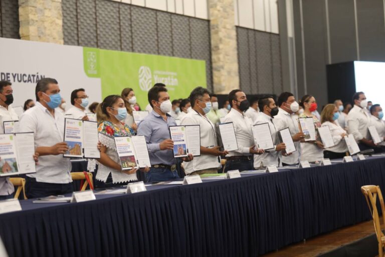 Mérida, Yucatán, 26 de octubre de 2021.- Alcaldes de los 106 municipios de Yucatán se sumaron a la estrategia «Yucatán Cero Residuos» que impulsa el Gobernador Mauricio Vila tras firmar la carta compromiso para ejercer el Programa de Manejo de Residuos, el cual se elaboró de acuerdo con las necesidades de cada demarcación, por lo que Yucatán se convierte en el primer estado del país en realizar esta herramienta de manera particular para cada localidad.