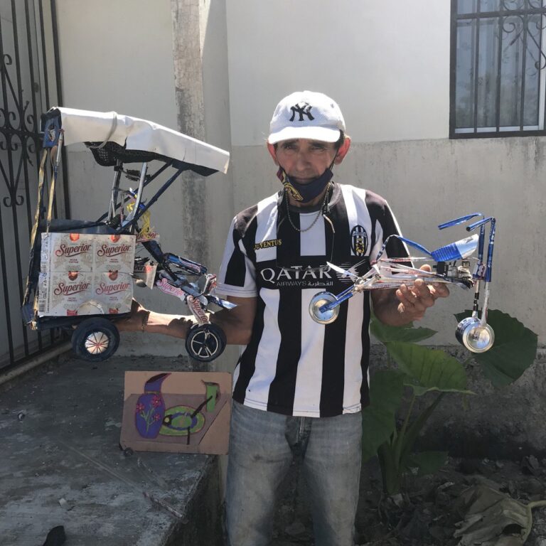 «Hago coches, hago trailers de doble remolque y pues eso lo que me ha ayudado en mis gastos (…) Se hacer hamacas, se hacer lápices con nombre, diademas con nombre, se hacer pulsos, se trabajar lo que es el cartón de huevo, lo reciclo, lo remojo en agua y hago artesanías» expresó.